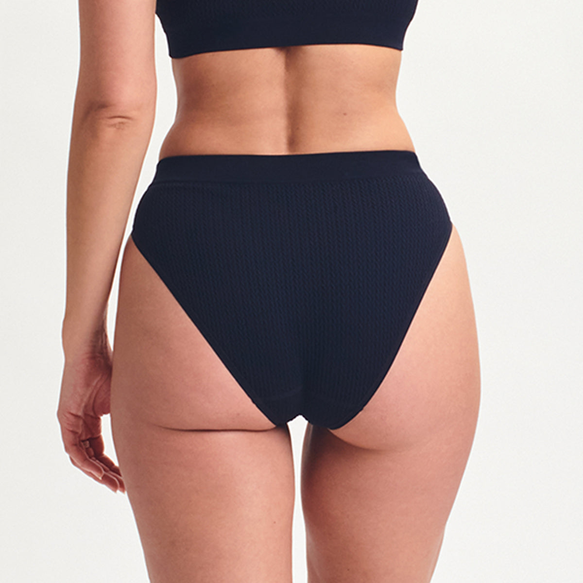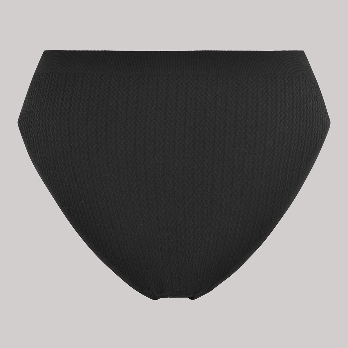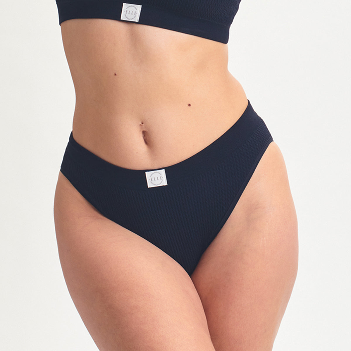 La gamma UNWIND Seamless della marca ELLE offre uno slip a vita alta donna in maglia che mette in risalto la silhouette. Il prodotto è realizzato con una rete effetto intrecciato e il logo ELLE presente al centro dell'elastico superiore. Il design dello slip si abbina perfettamente a quello del reggiseno disponibile negli stessi colori.