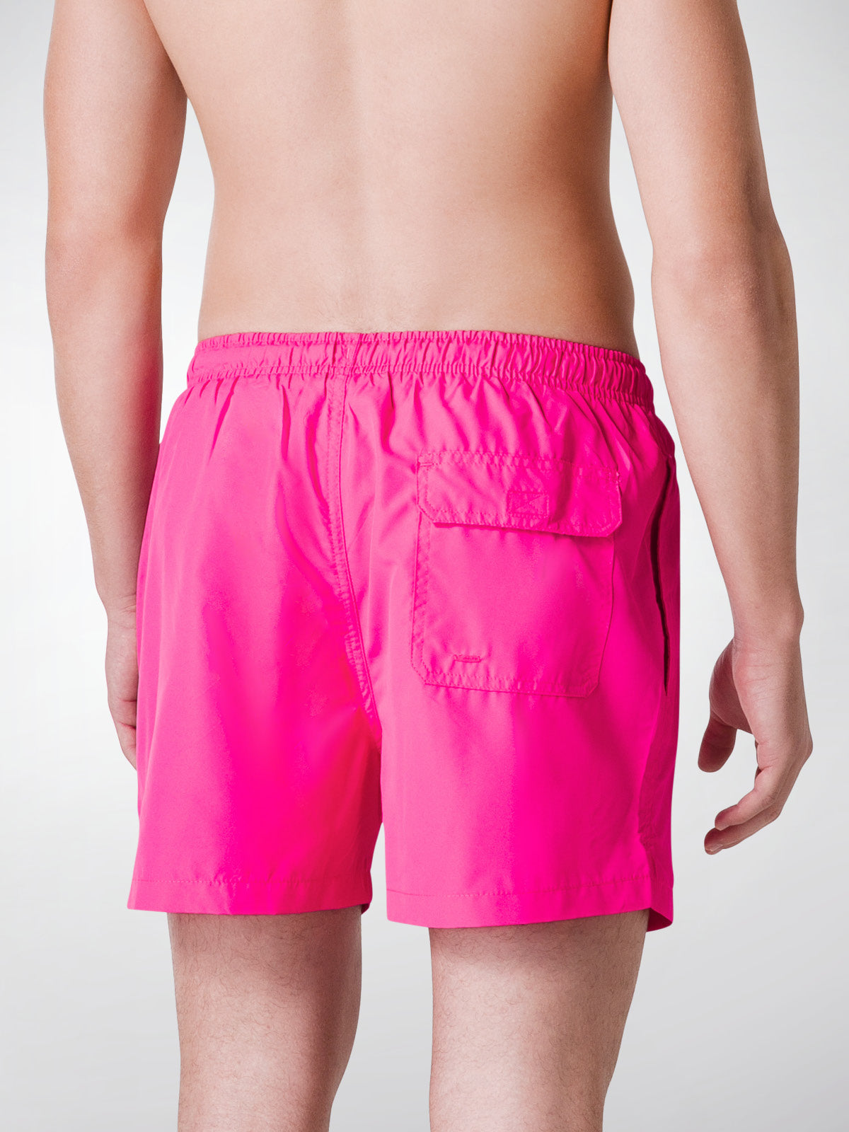 Costume boxer con elastico in vita e coulisse. Le tasche laterali a filetto e la tasca posteriore a toppa garantiscono un ottimo comfort. Il tessuto leggero a rapida asciugatura rende il capo pratico. Made in Italy