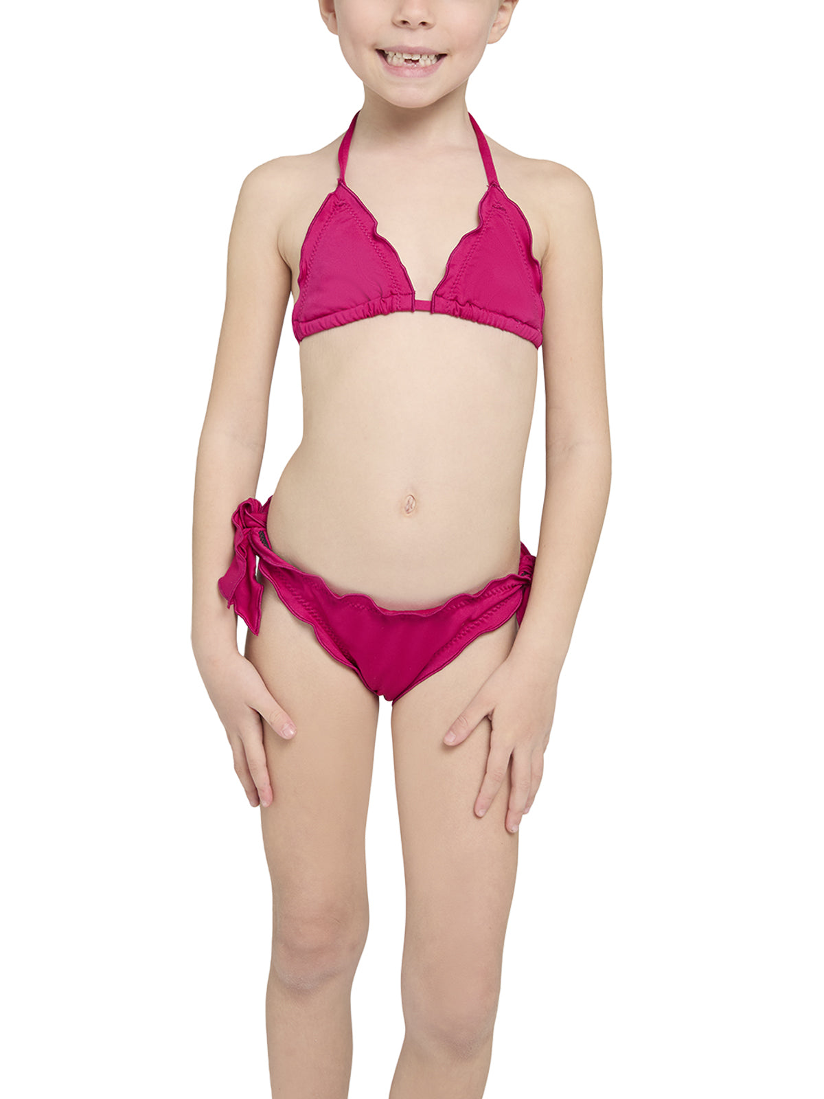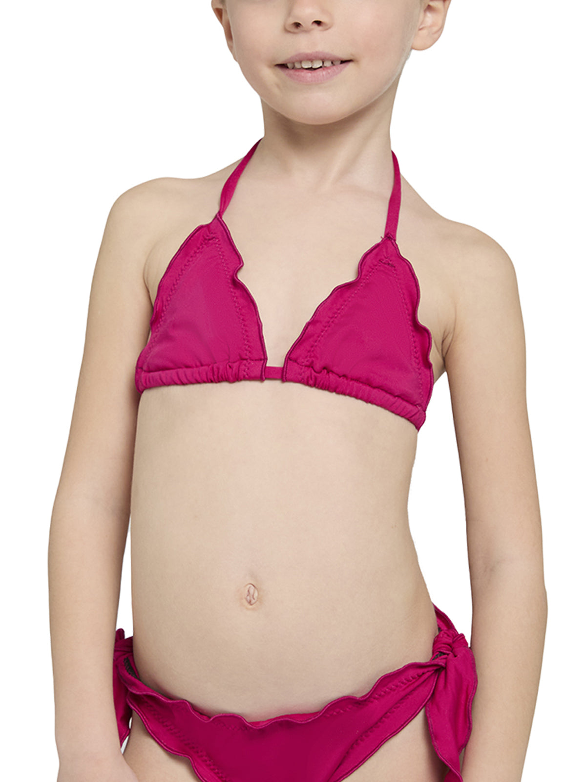 Il bikini in belissima microfibra a triangolo scorrevole con profili arricciati. Un look mini-me mamma e figlia. Made in Italy