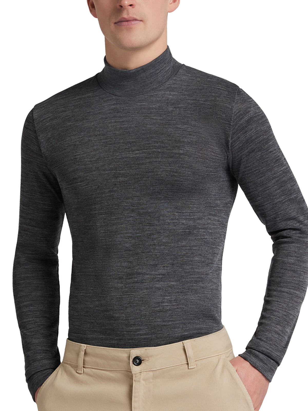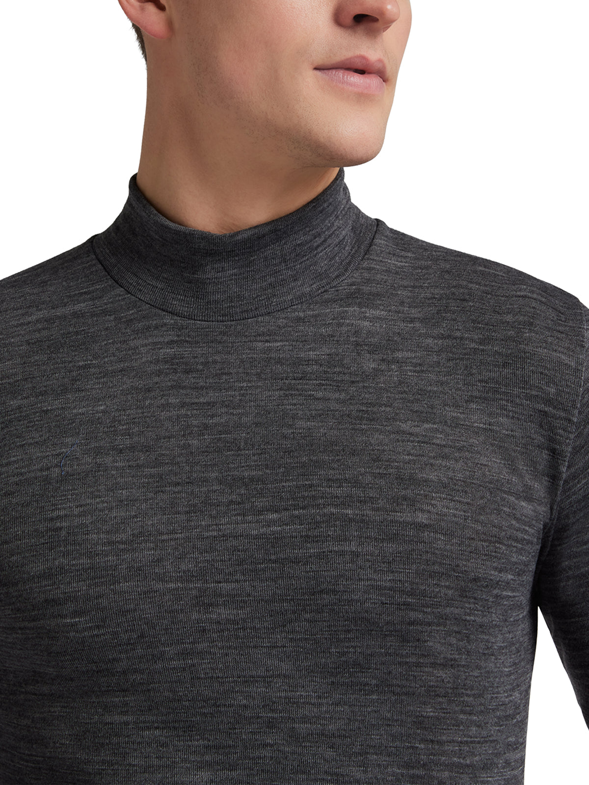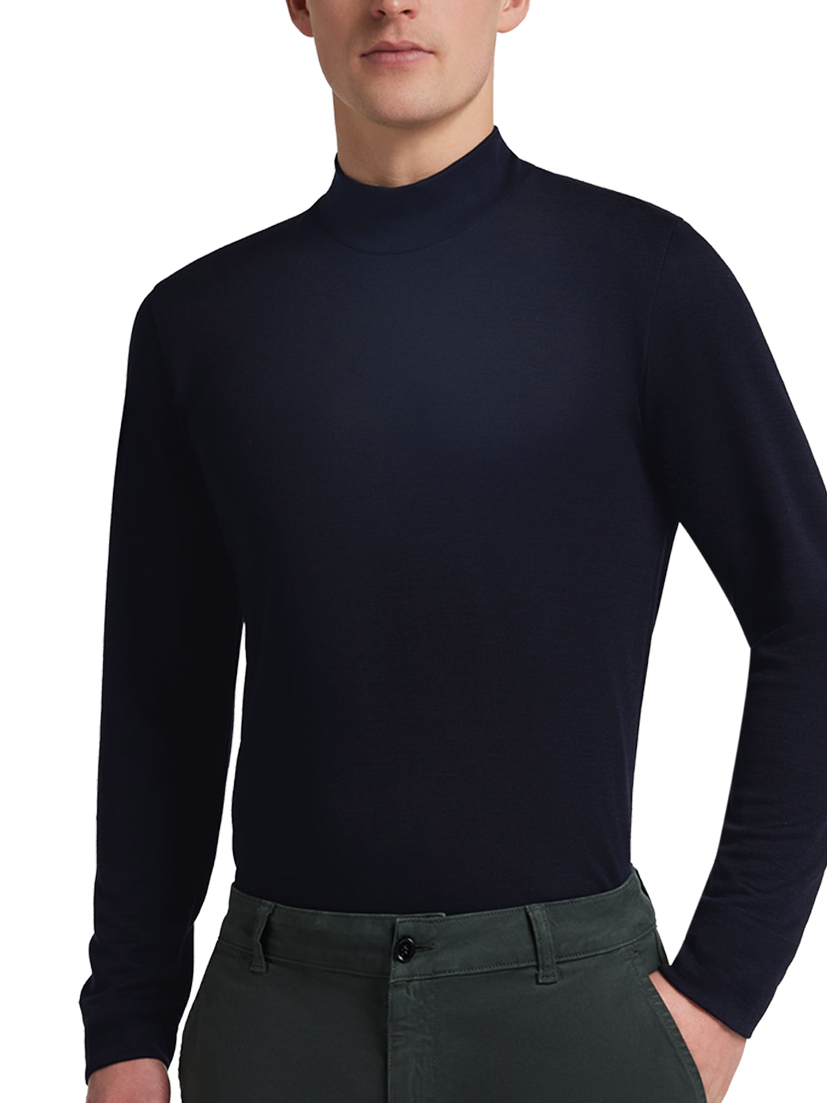 Maglia classica con collo lupetto e a manica lunga: il tessuto misto lana 50% garantisce morbidezza, leggerezza e comfort. Un capo adatto soprattutto per i climi freddi.