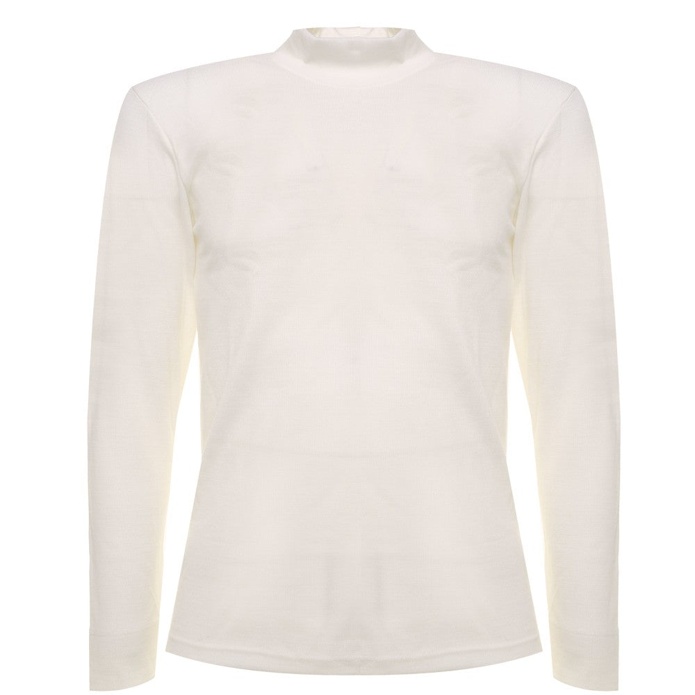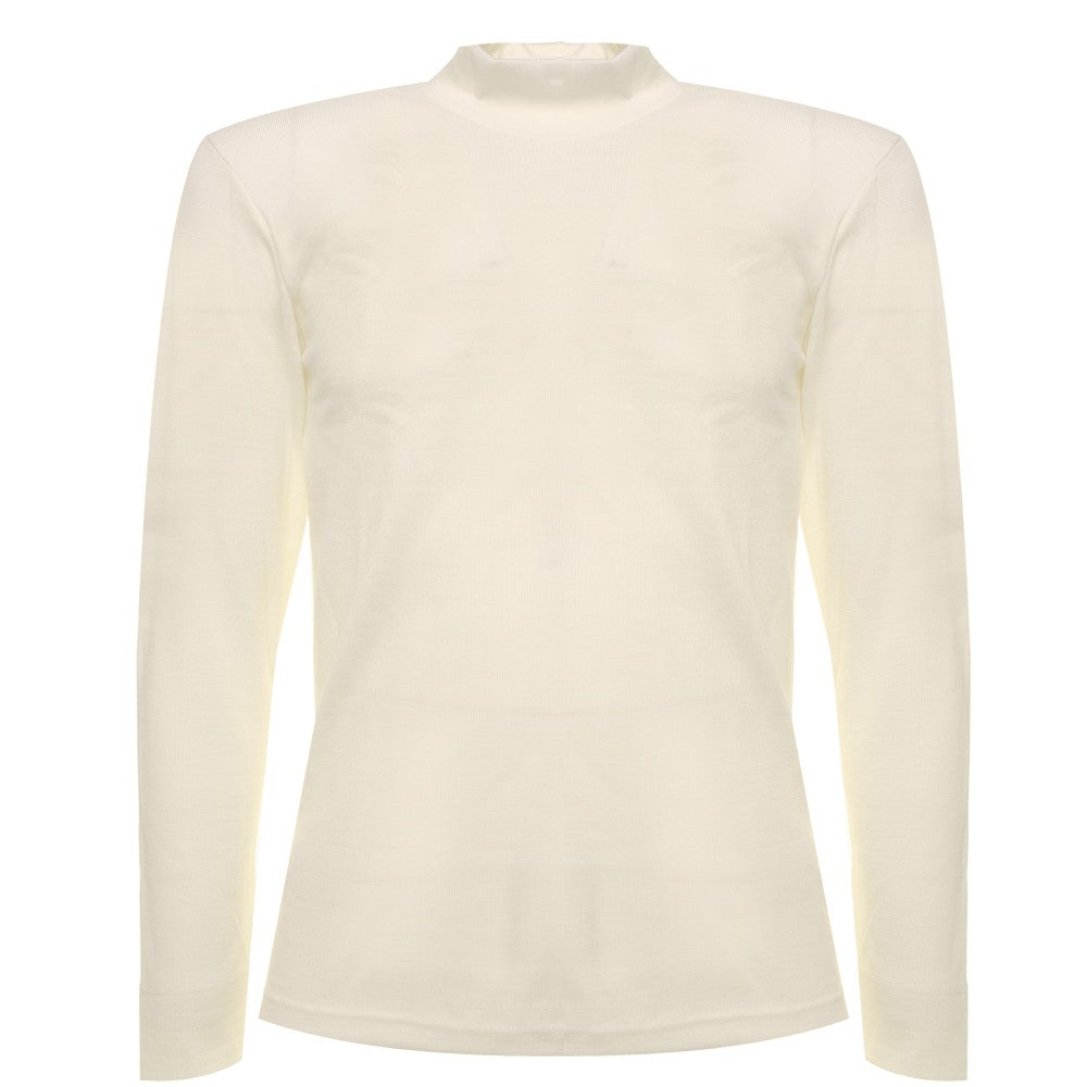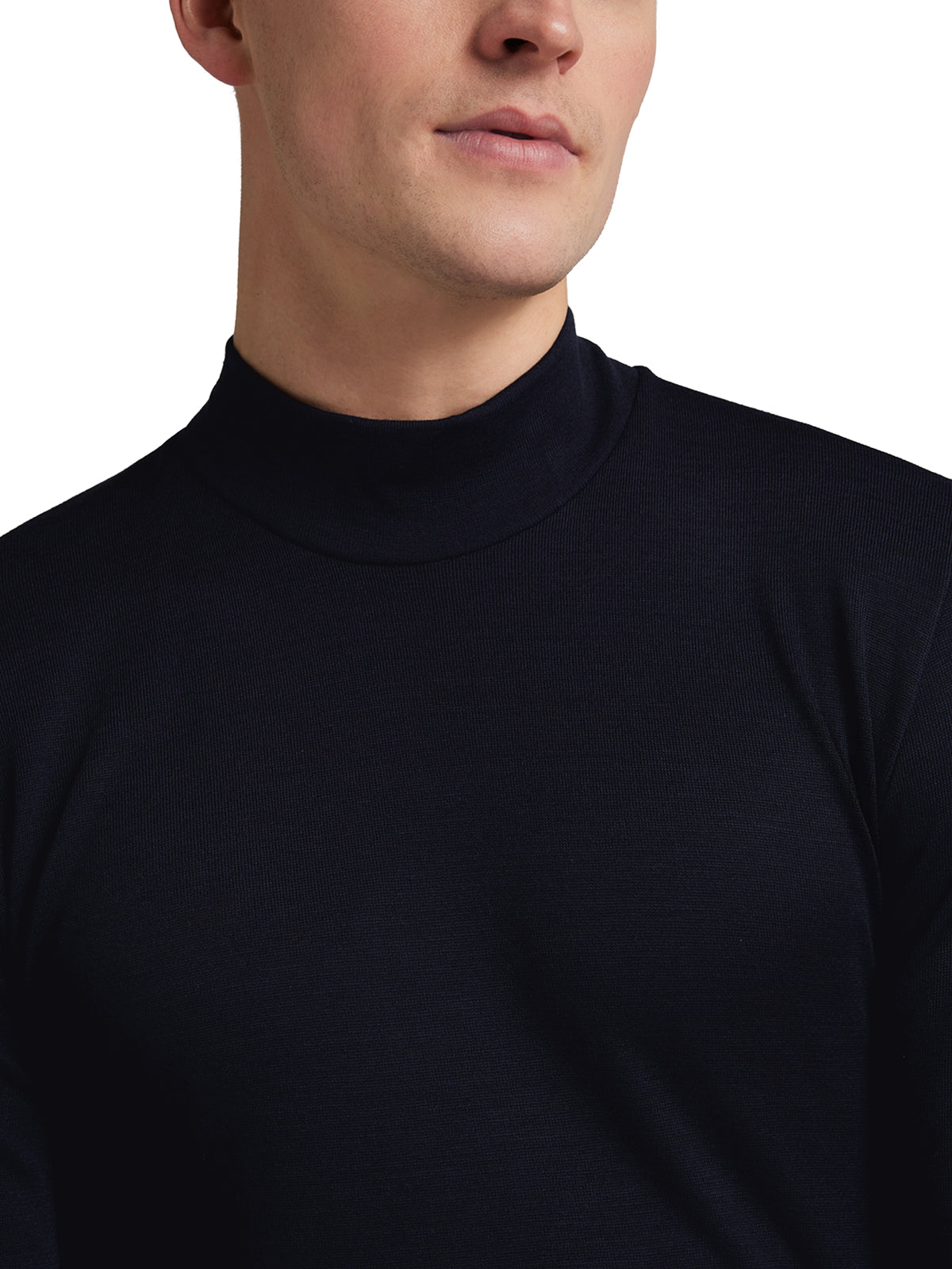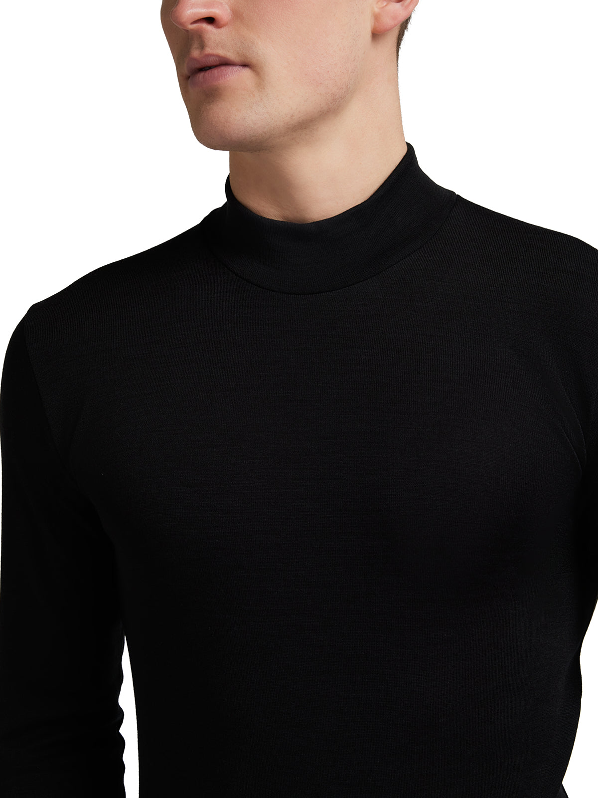 Maglia classica con collo lupetto e a manica lunga: il tessuto misto lana 50% garantisce morbidezza, leggerezza e comfort. Un capo adatto soprattutto per i climi freddi.