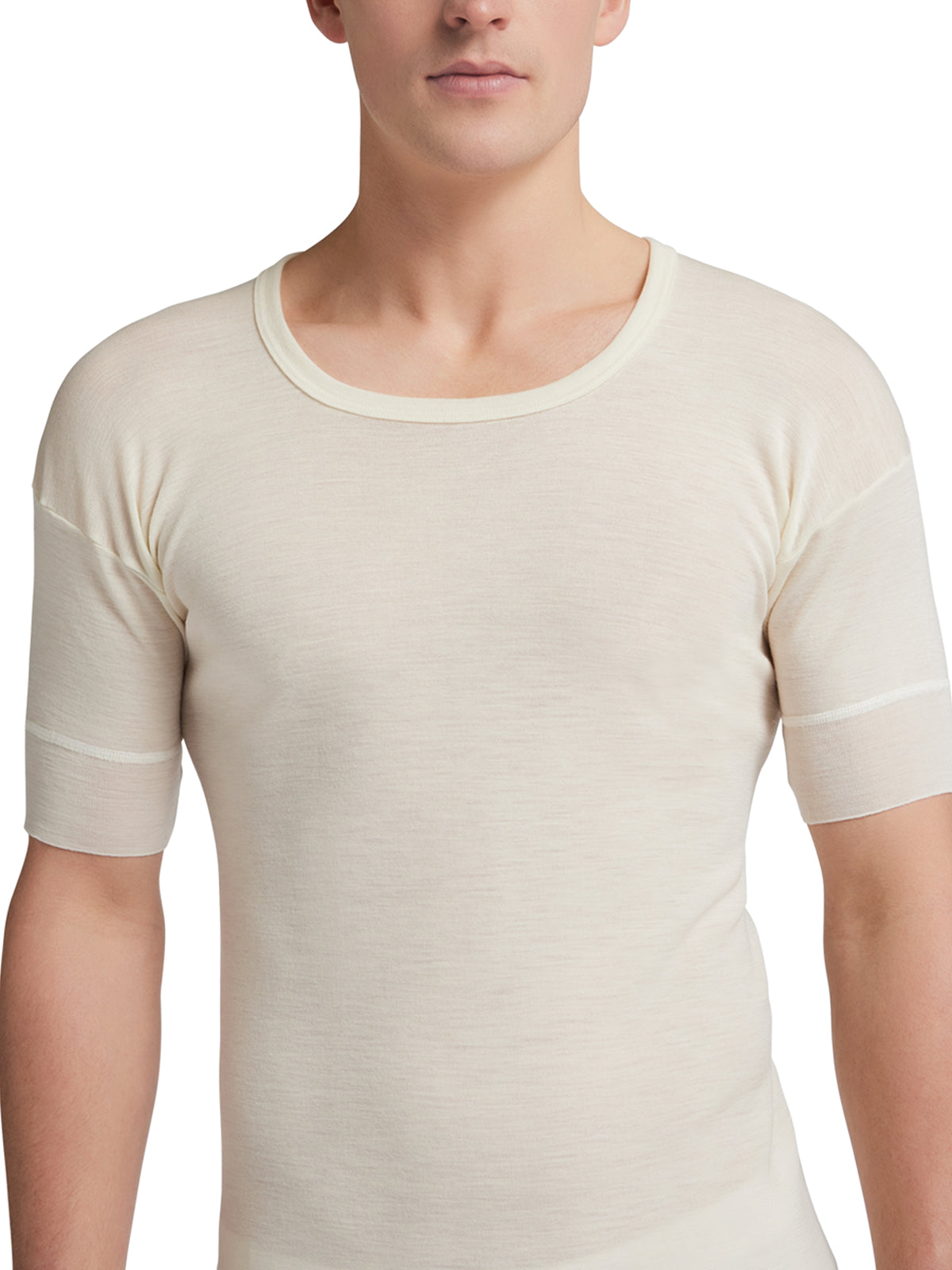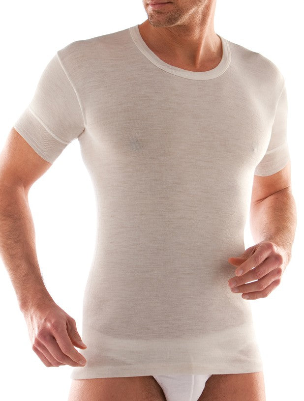 T-Shirt girocollo manica corta uomo, 80% lana leggera