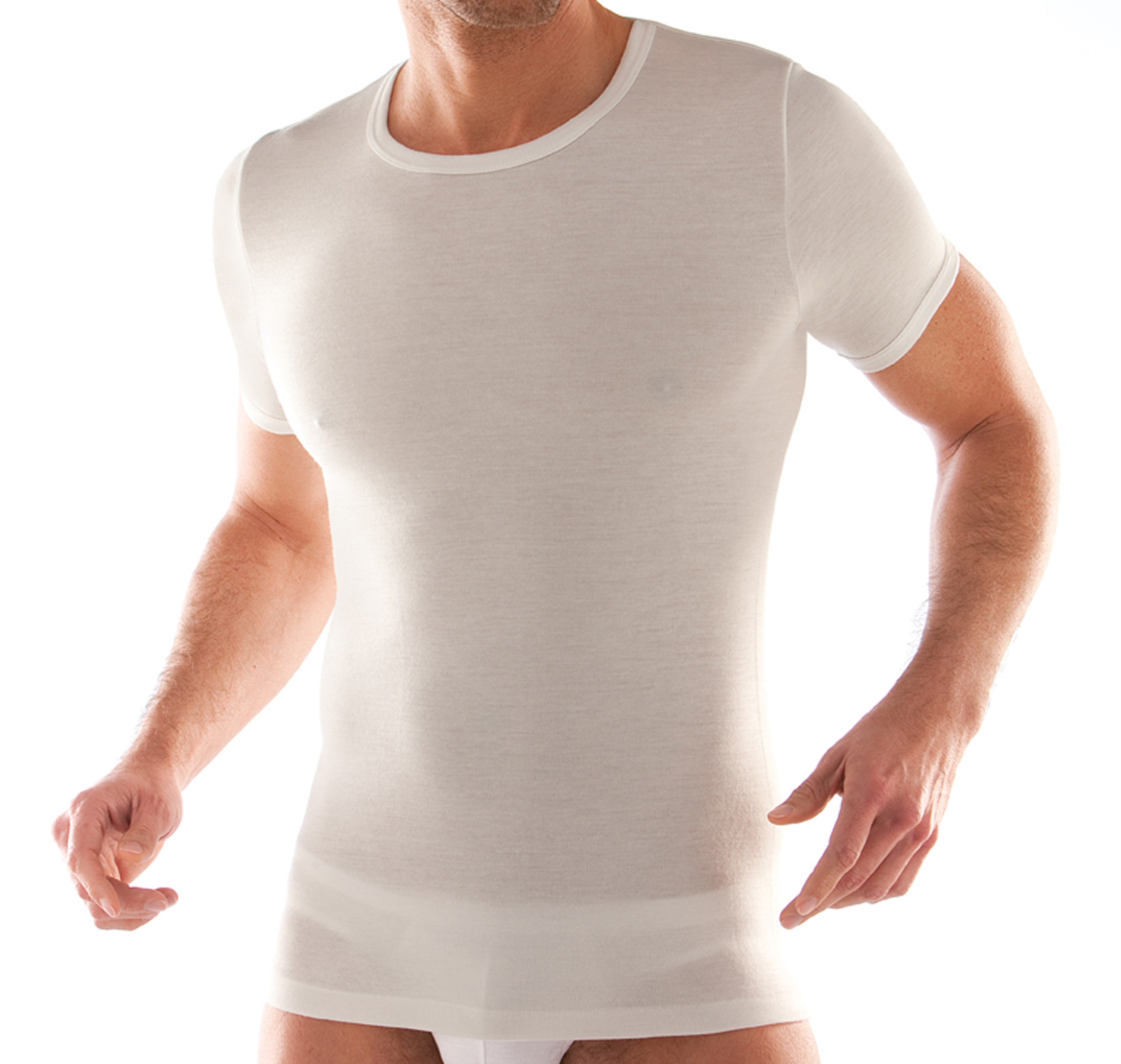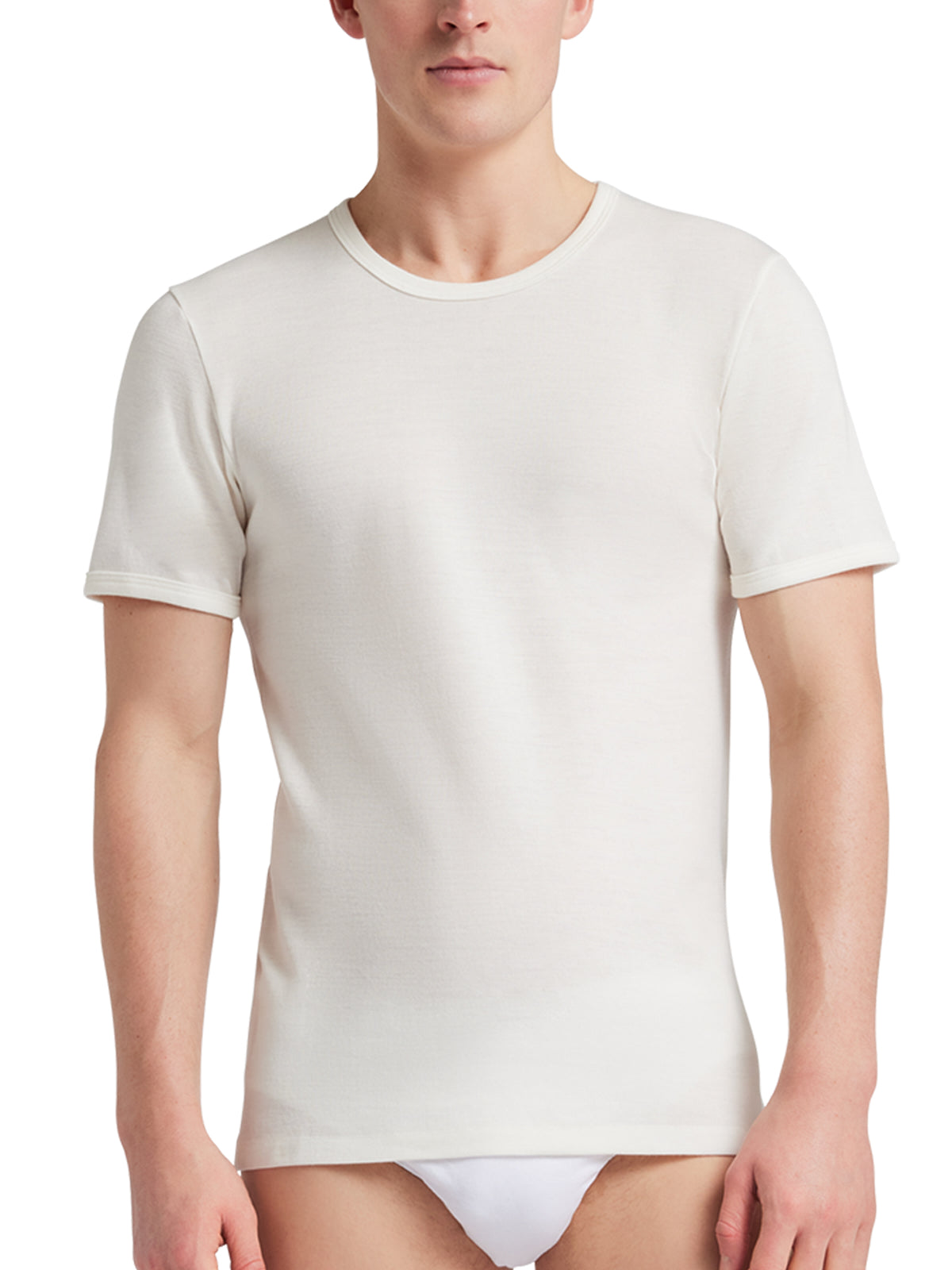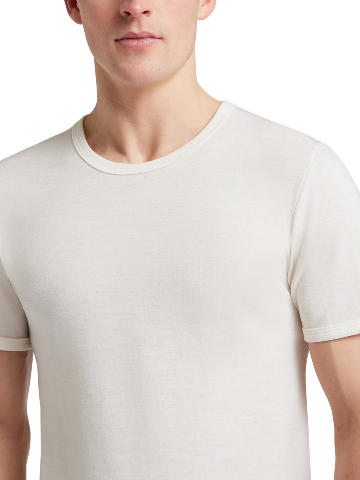 T-Shirt girocollo manica corta uomo, esterno 65% lana-interno 100% cotone
