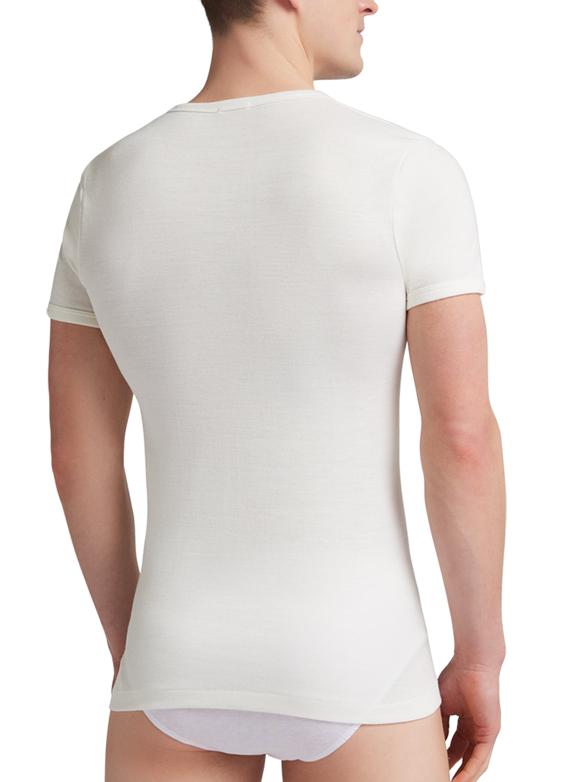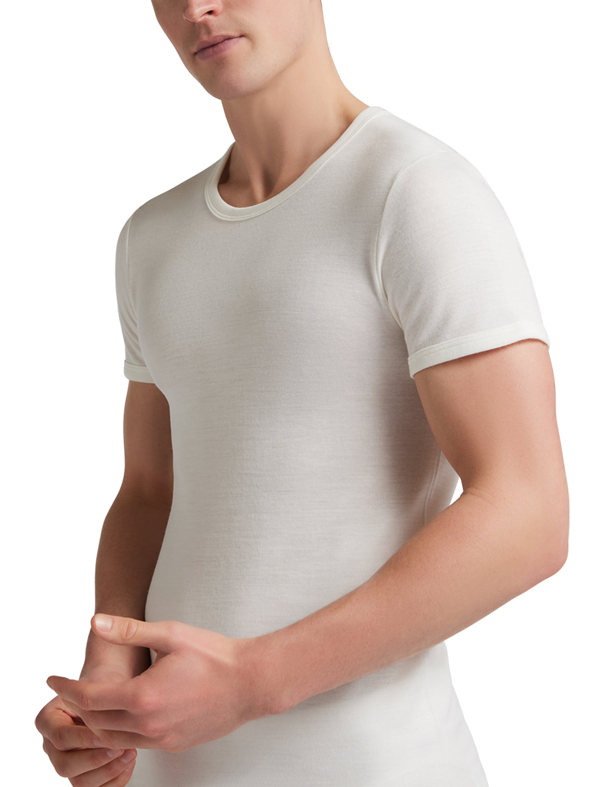 T-Shirt girocollo manica corta uomo, esterno lana (10%) - interno cotone 100%