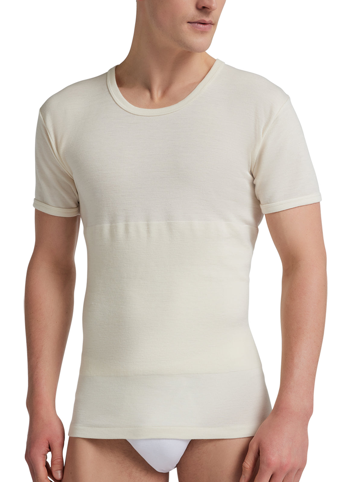 T-Shirt manica corta con fascia elastica uomo, misto lana (72%)