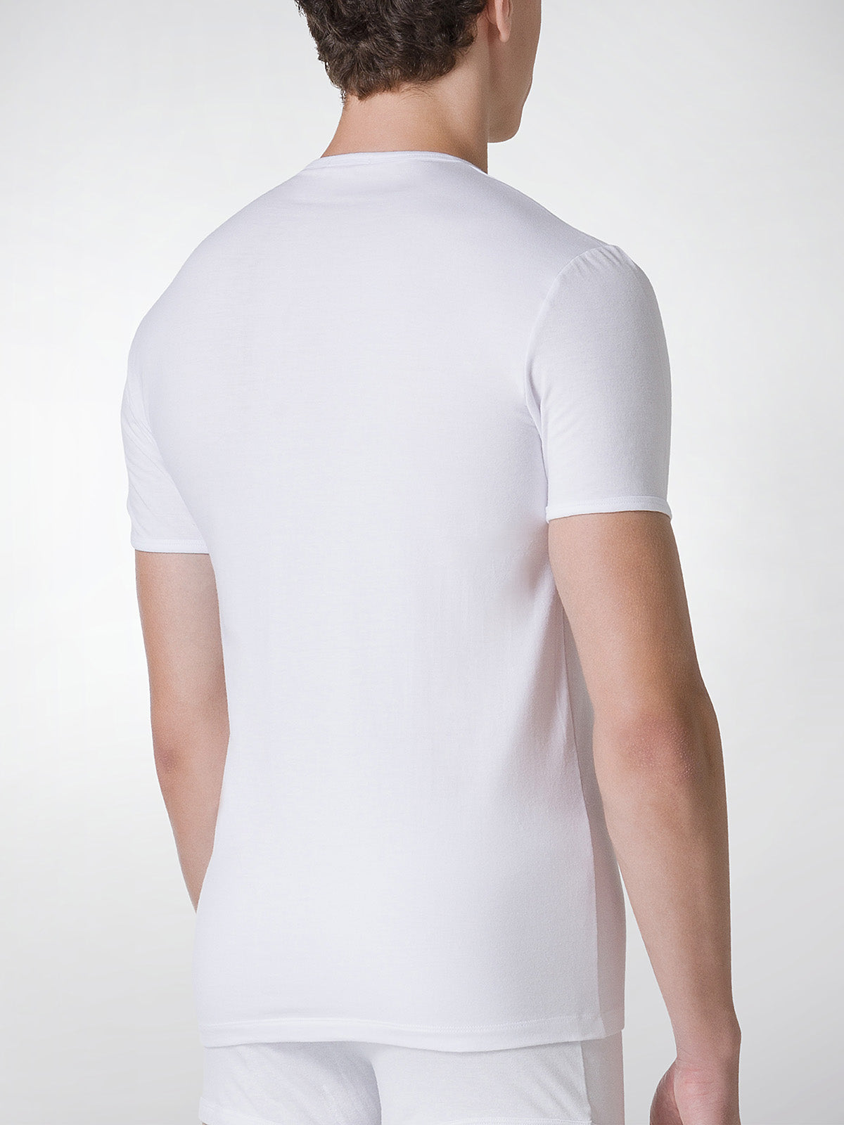T-Shirt scollo V manica corta uomo, cotone elasticizzato
