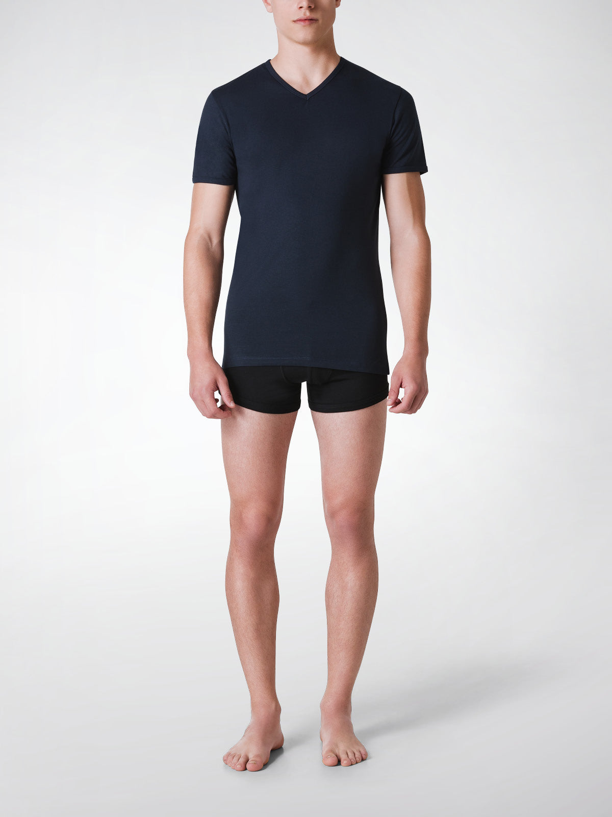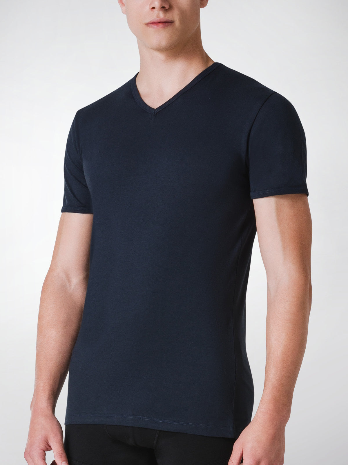 T-Shirt scollo V manica corta uomo, cotone elasticizzato