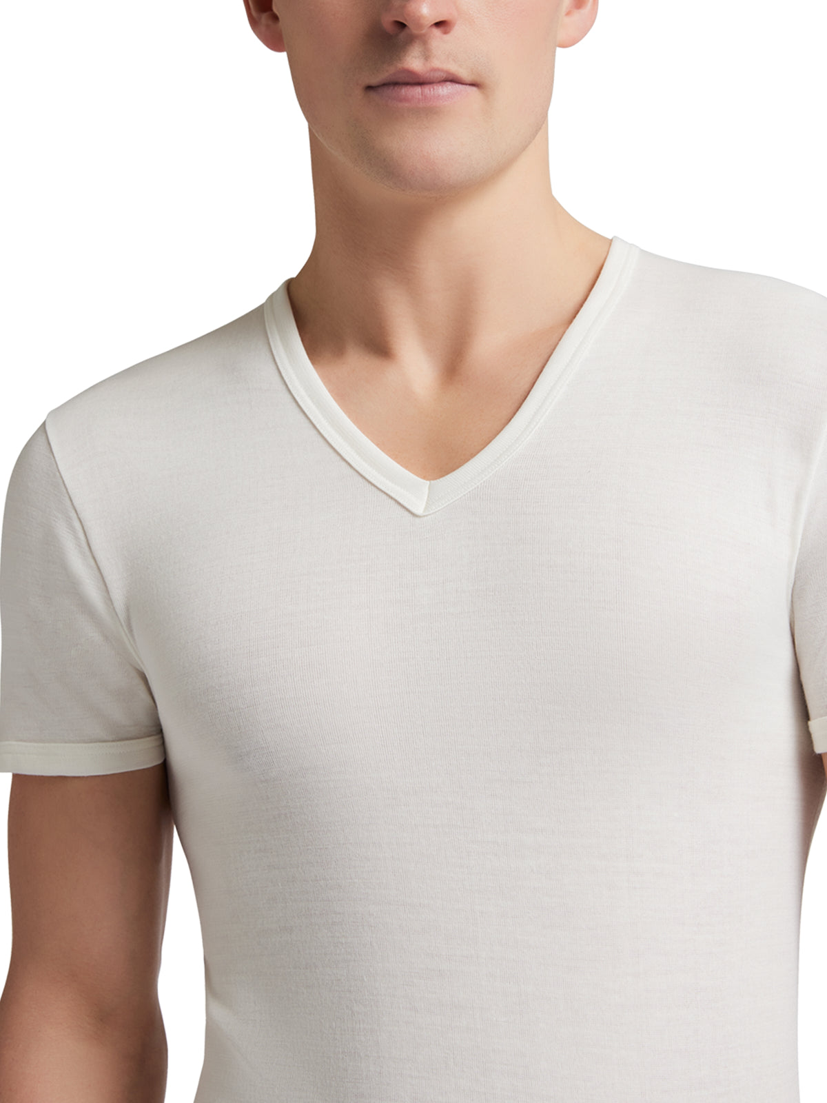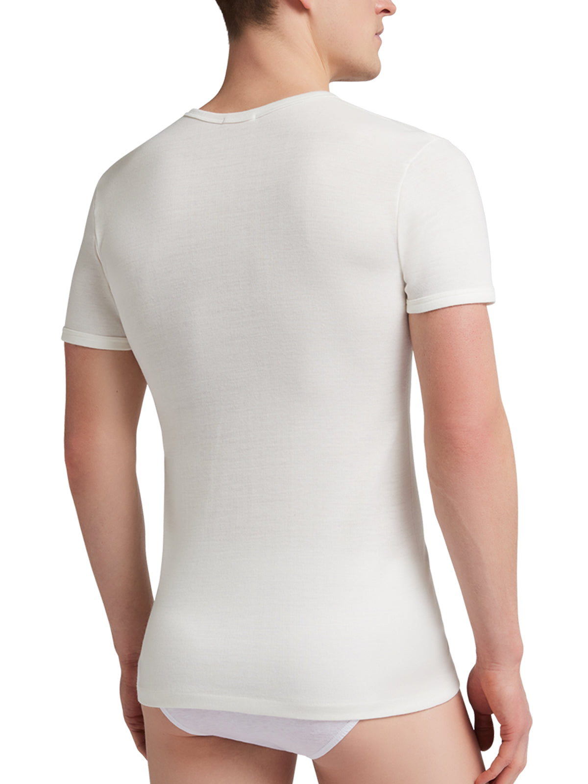 T-Shirt scollo V manica corta uomo, esterno lana (10%) - interno cotone 100%